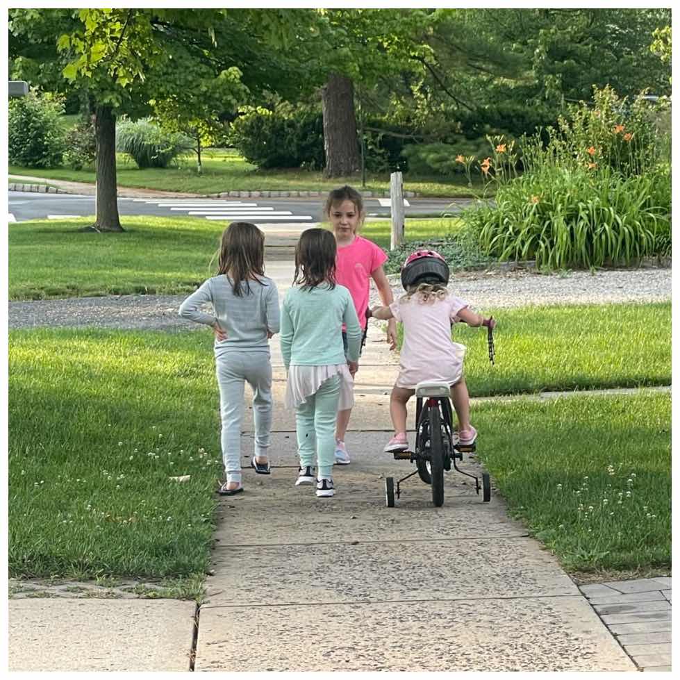 Lucy’s friend Caroline from down the street gave her a bike that she outgrew today. She LOVES it!  She is so proud riding all around the block on her own bike. Pictures of our lake renovations hit social media advertising today. Successful job marketing the pea gravel no one can order.